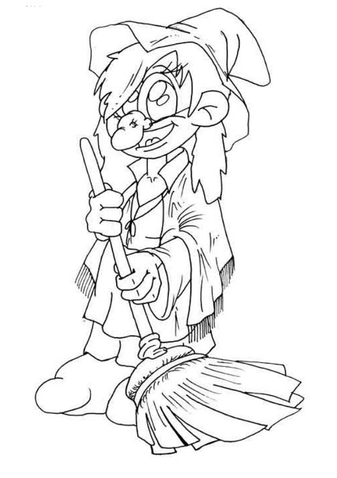 La bruja es uno de los sÃmbolos de Halloween, colorea esta bruja con escoba